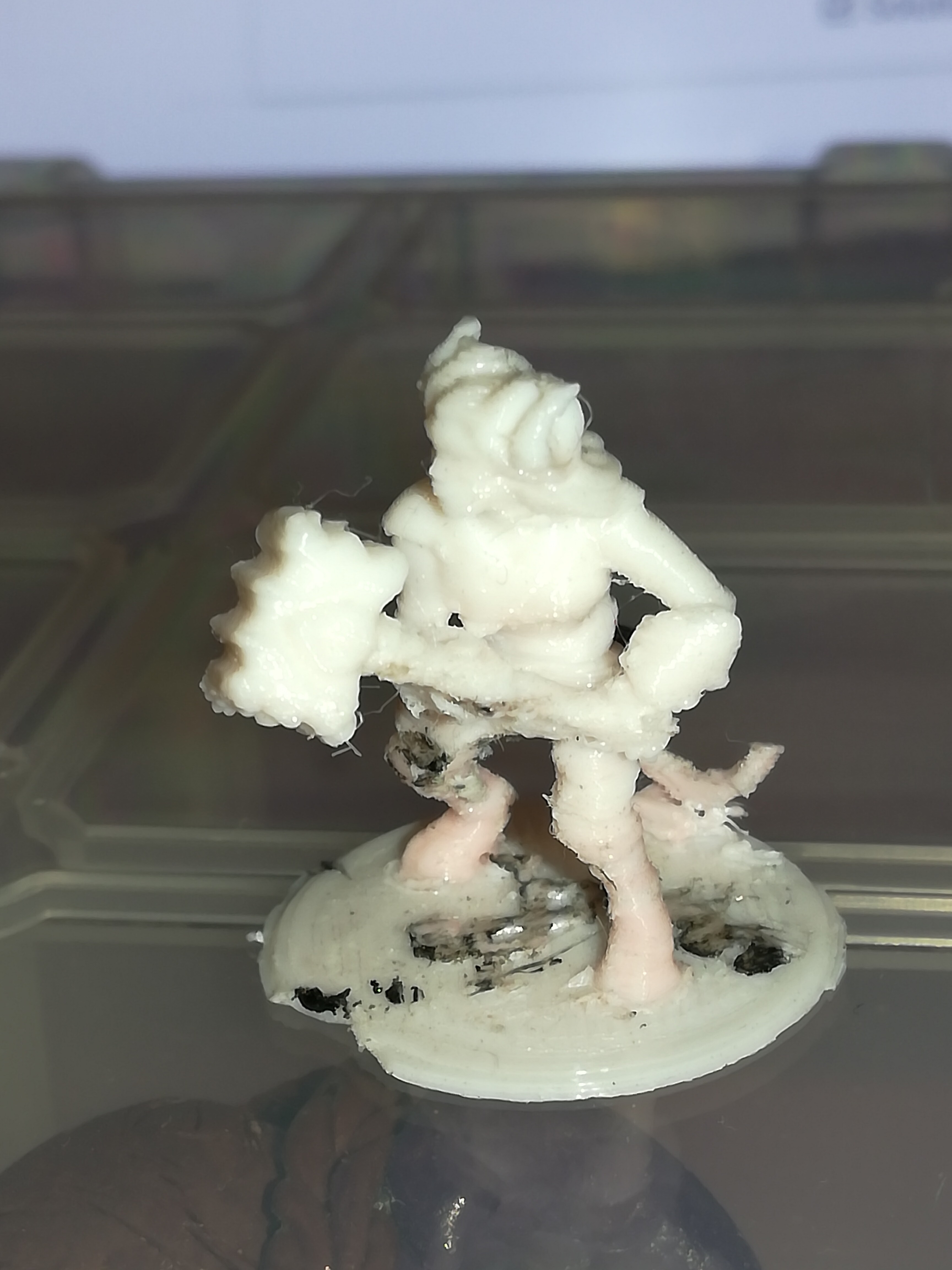Here’s a few of the ones I’ve done. The monsters, oddly, seem to work out better. Pardon my paint job. I’m still working on that. The black marks on the white model are from a heated Xacto knife. The mini is so small that I had to cut out some of the supports. They still need some cleanup.