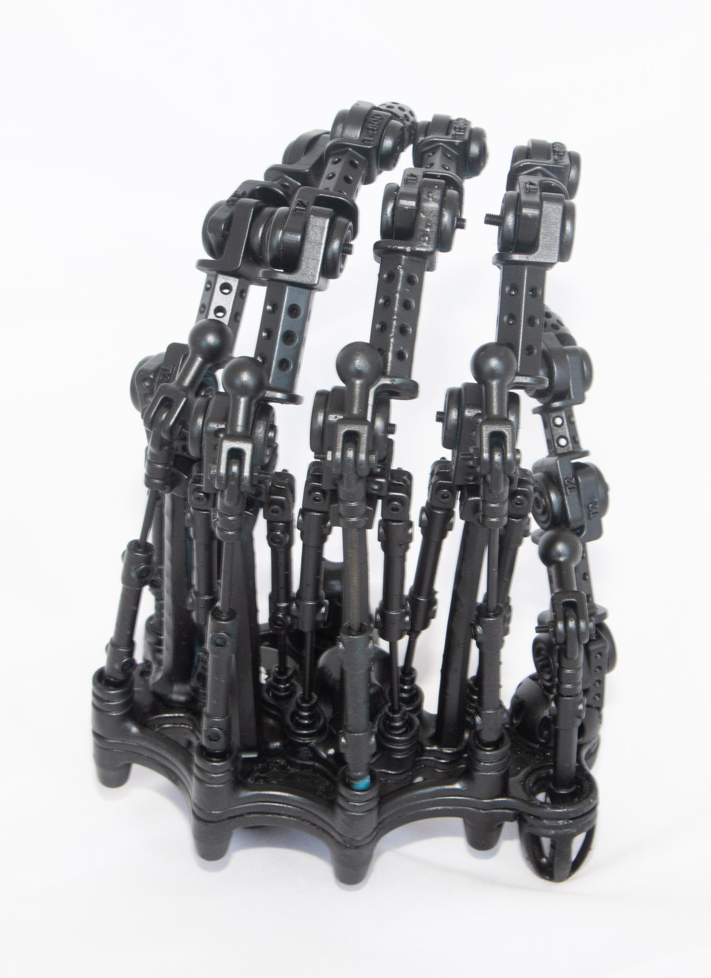 The arm is now assembled. I turned some aluminium rod for the pistons to replace the resin versions, because the arm is heavy.