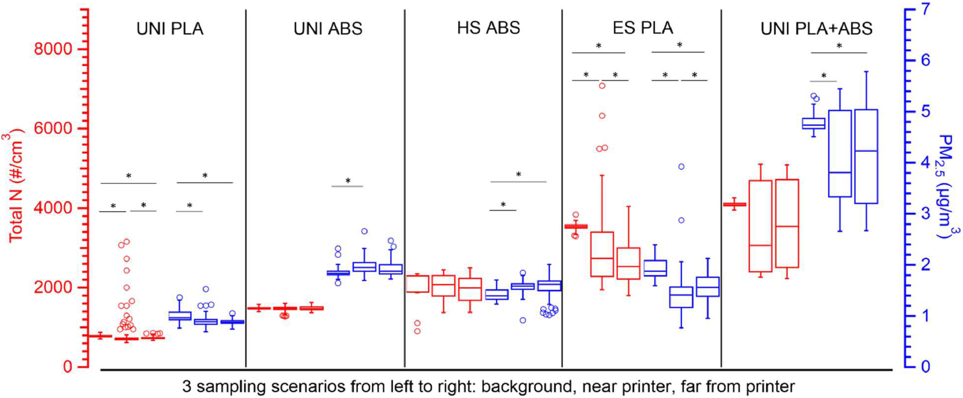 PLA VS ABS abs more VOC less UFP PlA less VOC more UFP. the next result they are about the same health wise.