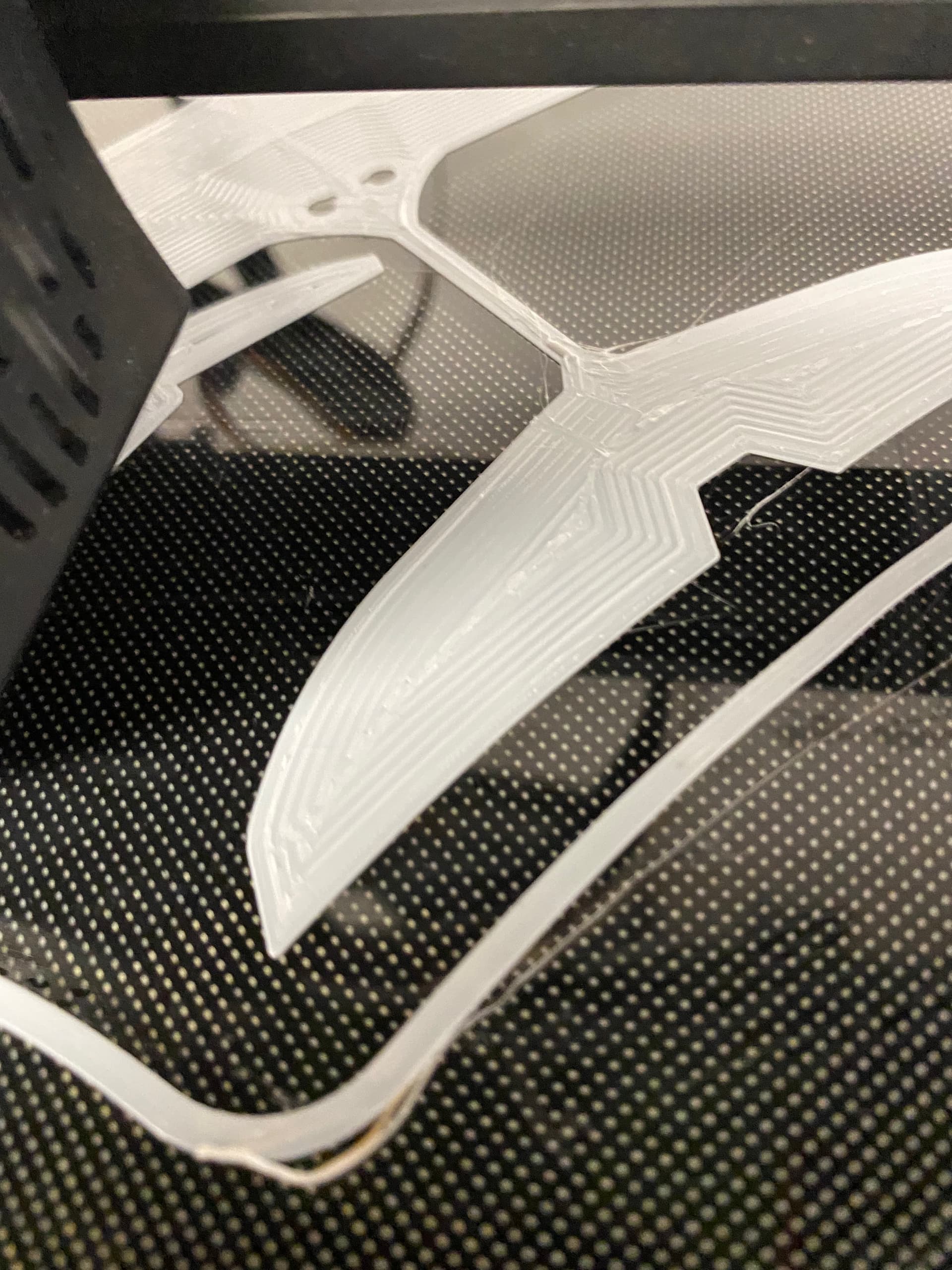 0.4 brass and 240 and 75 on bed the filiment is petg white 3d printing Canada brand filiment the recommended on the filiment roll says 200-240 and 75-80.
